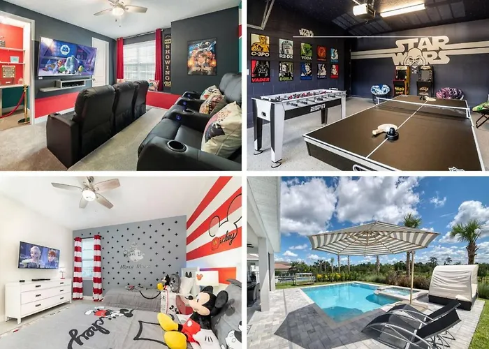 Ao estar no bairro Celebration, pousada Fantastic Disney Vacation W Pool And Movie Theater fica a aproximadamente 25 minutos a pé de Arnold Palmer Golf Course e disponibiliza jacuzzi e banheira quente. Os hóspedes podem desfrutar de tênis de mesa nesta propriedade, localizada a 7 km de ESPN Wide World of Sports Complex.